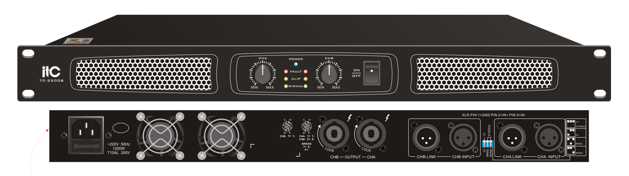 Усилитель ITC-21200 2-канальный усилитель, 2х1200W / 8 Ом